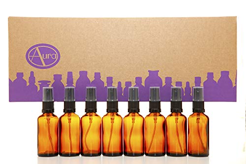 Bottiglie 50ml in vetro ambrato con diffusore spray nero - Confezione da 8