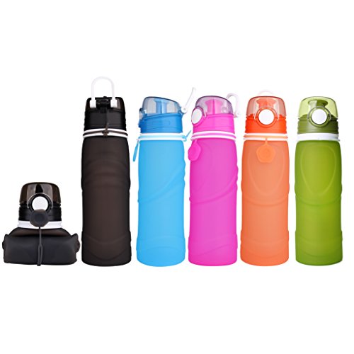 Bottiglie di acqua pieghevoli 750ml in silicone pieghevole per viaggi, sport, campeggio, mensa con valvola a prova di perdite, 100% senza BPA, certificazione FDA