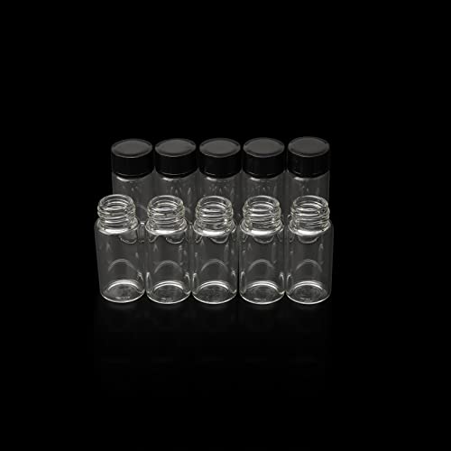 Bottiglie campioni in vetro trasparente da 5 ml con tappo a vite, flaconcini da laboratorio per la raccolta di liquidi per oli essenziali, tappo in plastica, confezione da 10