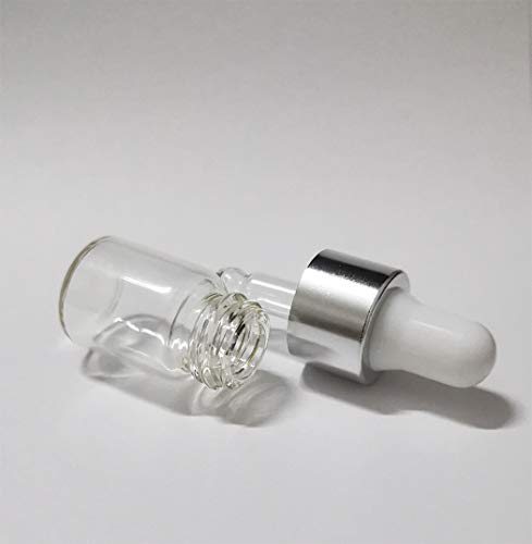 Set da 20 bottiglie di vetro da 1 ml con contagocce in vetro per flaconi di campioni di piccole bottiglie di olio essenziale con contagocce in vetro, colonie e profumi (argento-trasparente)