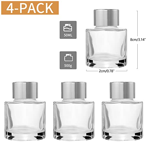 A/A Set di 4 Bottiglie di Vetro Diffusore,50 Ml Bottiglie Riutilizzabili Contenitore,Fragranza Accessori Uso per Fai da Te di Ricambio Diffusore Set, Decorazione per Casa Ufficio Tavolo Macchina
