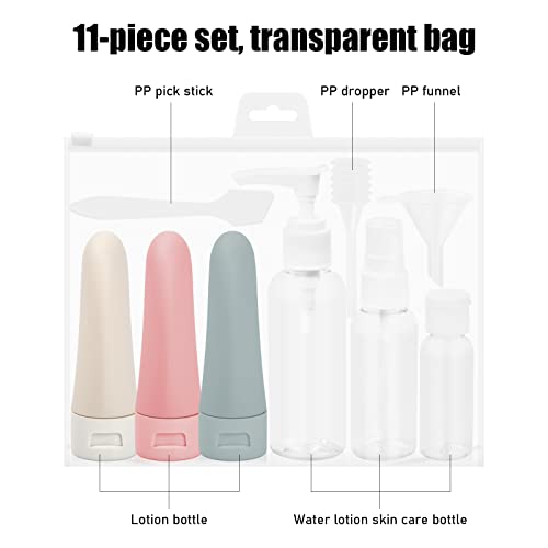 【Set di Flaconi da Viaggio Portatili】Contenente 3 flaconi in silicone, 1 flacone con pompa, 1 flacone spray, 1 flacone con tappo a scatto, 2 vasetti per crema, 1 imbuto, 1 pipetta, 1 spatola, 1 sacchetto per articoli da toeletta trasparente per soddisfare il tuo necessità di viaggiare con cosmetici e articoli da toeletta.