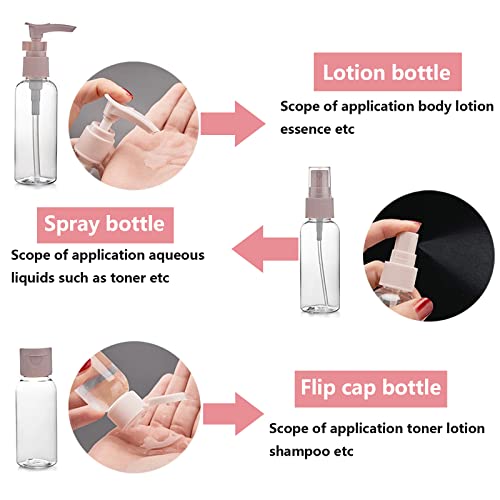 【L'imballaggio Comprende】Riceverete 1 flacone a pompa da 80 ml, 1 flacone spray da 50 ml, 1 flacone flip-top da 30 ml, 1 imbuto, 1 spatola, 1 cannuccia, 2 flaconi di crema da 10 g,1 sacchetto trasparente,Può soddisfare le esigenze di cosmetici e articoli da toeletta da viaggio.