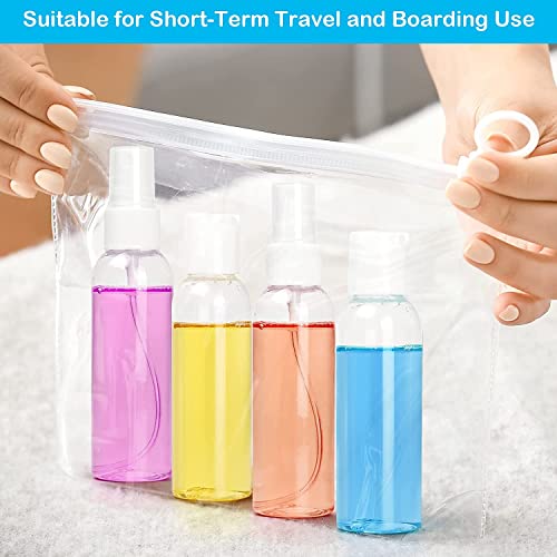 Set di 12 bottiglie da viaggio, 60 ml, bottiglie di plastica trasparente con 2 piccoli imbuti per viaggi, uso quotidiano, articoli da toeletta, prodotti per la cura della pelle