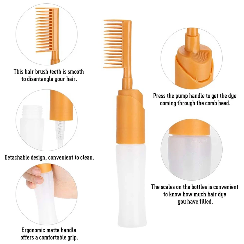 2 PCS Dye Bottle Applicator Combs, 80Ml Hair Colour Dispenser Pump Professional Brush Coloring Dyeing Comb Styling Tool