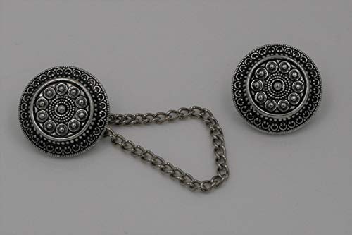 Bottoni in argento anticato con catena, design accattivante 22 mm, catena 50 mm chiusura giacca