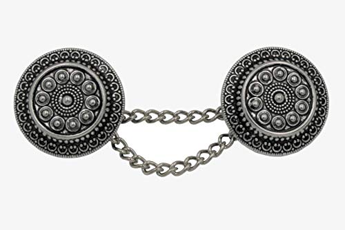 2 bottoni in argento antico (22 mm) con design accattivante, 1 catena argento.
