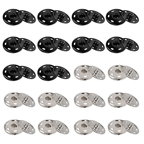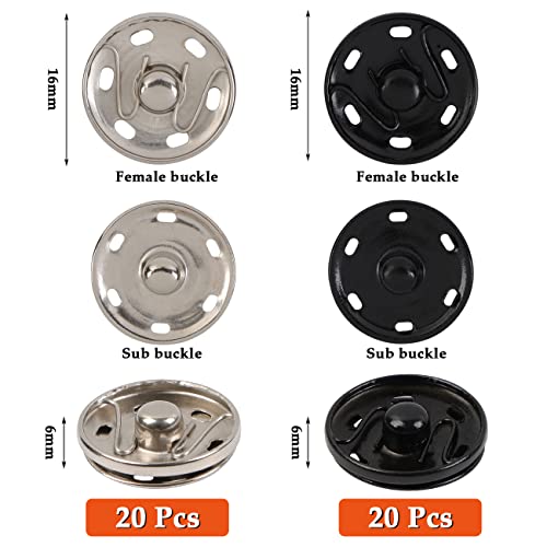 40 Set Bottoni Automatici in Metallo, Bottoni Automatici da Cucire, 16 mm, Argento Nero Bottoni Automatici per Abbigliamento da Borsetta, Artigianato Fai-da-te, Antiruggine.