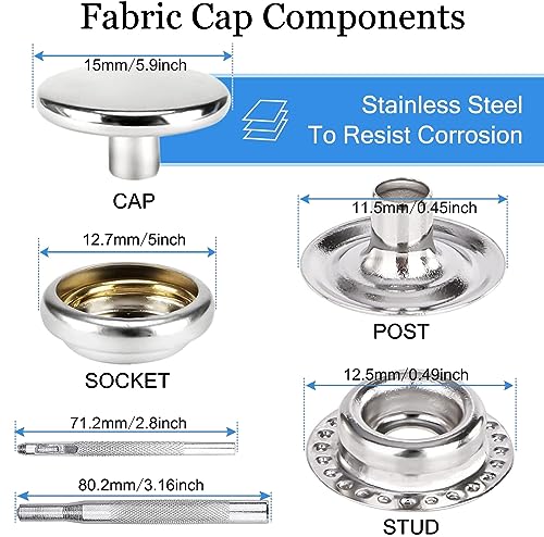 AMPIA APPLICAZIONE: kit di bottoni pressione per riparare e sostituire teli, teloni, tende, tende da sole, teli, mobili da giardino, coperture per piscine e altro;