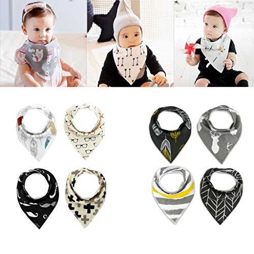 Set di 4 Bottoni Drool Sbavare Bavaglini Asciugamano Impermeabili Cotone Bandana Disegni Bimbo