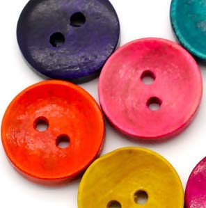 Dimensioni: diametro 15 mm, 2 fori da 2 mm, spessore bottone 4 mm, rotondo.