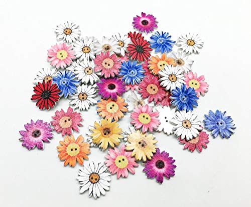 Bottoni in legno, creativi, per cucito, Legno, Multi-Flower