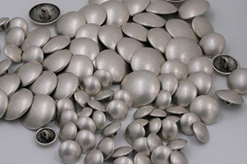 Bottoni in metallo color argento opaco, leggermente bombati con occhiello (10 pezzi) (18 mm)