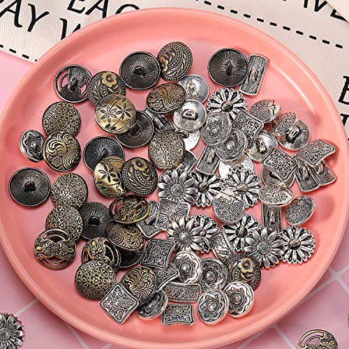 Bottoni in Metallo 80 Pezzi Argento Antico e Colore Bronzo per Cucito Artigianale Fai Da Te Decor, Bottoni Vintage Rotondi del Fiore in Stile Misto
