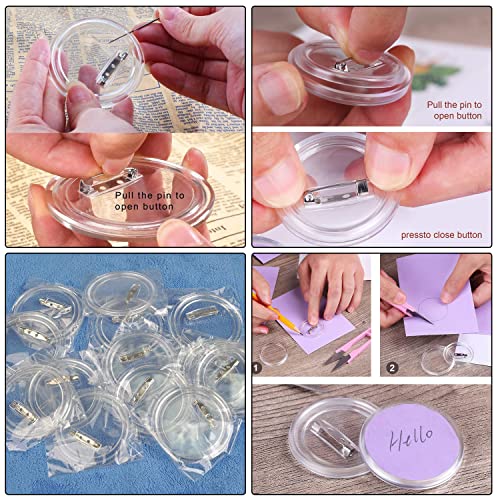 Ampio utilizzo: i pulsanti fai-da-te trasparenti sono adatti per badge, targhette con nome, bottoni fotografici, accessori moda, artigianato per carnevale, costumi, addii al celibato, compleanni, matrimoni, addio al nubilato, fiere, ecc.