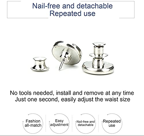 Set di 12 bottoni a spilla per jeans rimovibili, applicazione istantanea, regolazione perfetta, senza cuciture, a pressione, di ricambio, in lega di zinco