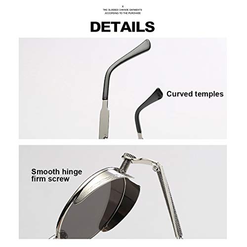 Materiale: struttura in metallo resistente con design a rotondo retrò, cerniera a molla è più flessibile e comoda, adatta a tutti i tipi di volti di persone. Le lenti sono realizzate in materiale in policarbonato (PC) leggero, non facile da graffiare o danneggiare da graffi durante il normale utilizzo.