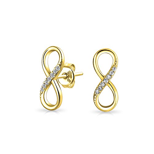 Boucles D'Oreilles Classiques En Zirconium Cubique Pour L'Éternité Symbole De Nœud D'Amour Romantique Pour L'Éternité Boucles D'Oreilles Infinity Pour Femmes Plaqué Or Jaune 14K .925 Argent Sterling