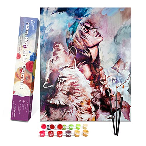Bougimal Dipingere con i Numeri Adulti Donna e lupo, Decorazione della casa senza Telaio 40 * 50 cm