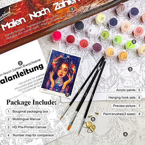 MIGLIORE ESPERIENZA DEL CLIENTE: Bougimal dipingere con i numeri adulti viene fornito in una bella scatola ed è un grande regalo! Bougimal promette di fornire 60 giorni di supporto gratuito pigmento e istruzioni a vita per la dipingere con i numeri