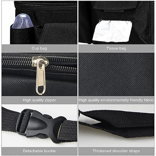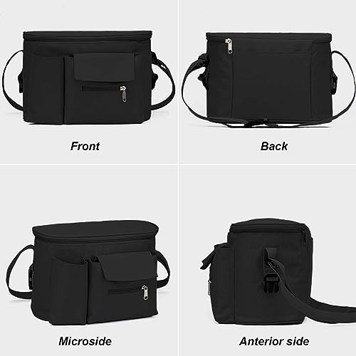 BouGPeng Borsa Organizer per Passeggino con Cerniera e Tracolla e Portabicchieri Universale Portaoggetti da Appendere Passeggino Impermeabile Nero Organizzatore per Passeggino Bambini