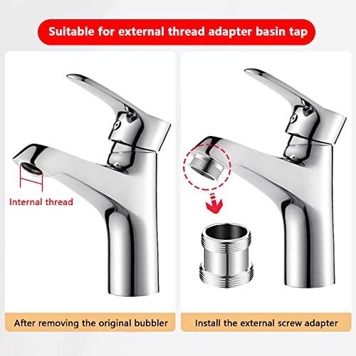 Il Pacchetto Include: 2 Pezzi di adattatore per rubinetto con filettatura maschio da M22 a M24 e 4 pezzi di guarnizioni in gomma. Aggiungete un'ulteriore funzionalità di adattatore per rubinetto al vostro aeratore esistente per consentire al vostro aeratore di estendere la lunghezza del collegamento.
