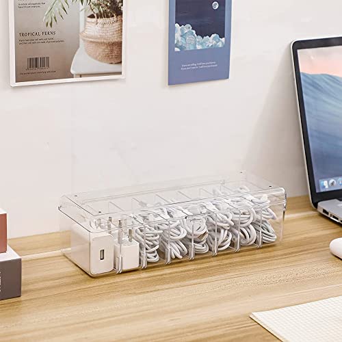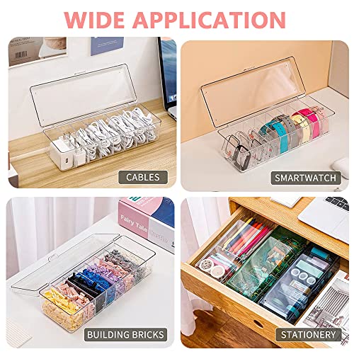 BouGPeng Scatola di Immagazzinaggio per Cavi Dati con coperchio 8 Griglie Porta Cavi Organizer Scrivania con 10 Fascette e etichetta carta Organizzatori per Cassetti in Plastica(26×9,5×7cm)