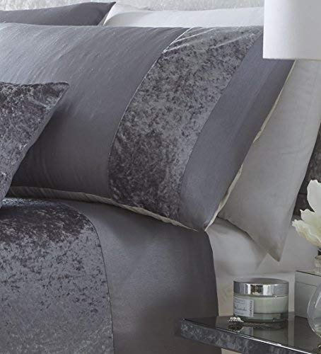 Boulevard Velluto Striscia Trapunta Copripiumino e 2 Federa Set di Biancheria da Letto, Grigio, Super-King