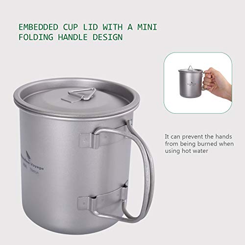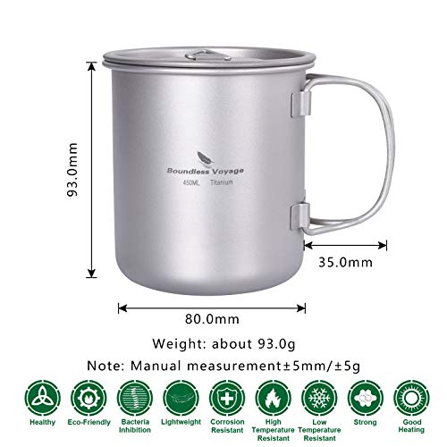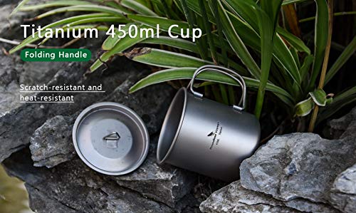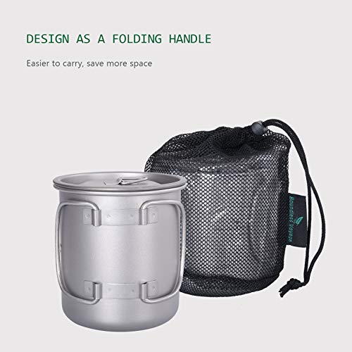 Boundless Voyage Campeggio Pentole 450ml Titanio Campeggio Pot con Coperchio Pieghevole Maniglia Ultralight Titanio Tazza Caffè per Backpacking Escursionismo Ti1544C