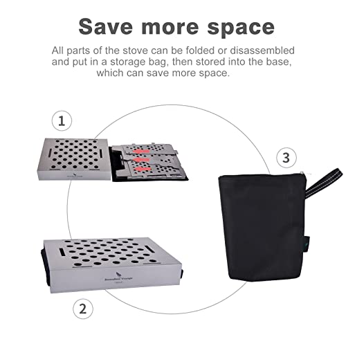La stufa è design pieghevole, Tutte le parti della stufa possono essere piegate o smontate e messe in un sacchetto di immagazzinaggio, quindi riposte nella base, il che può risparmiare più spazio.