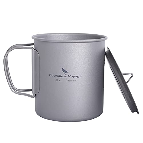 Boundless Voyage Titanium 450ml Tazza con coperchio Pieghevole Maniglia Esterna Campeggio Ultralight Acqua Tè Tazza Caffè