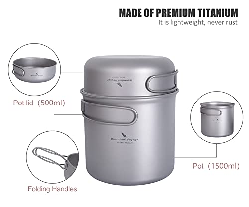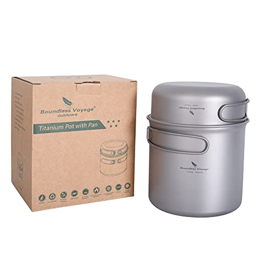 Boundless Voyage Titanium Pot Pan Cook Set con manico pieghevole Outdoor Campeggio Picnic Escursionismo Tazza Piatto Stoviglie Mess Kit Ti2051C