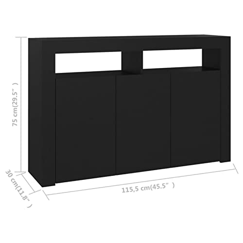 Bounv Credenza Soggiorno, Credenza Moderna Cucina, Mobile Soggiorno, Credenza con Luci a LED Nera 115,5x30x75 cm