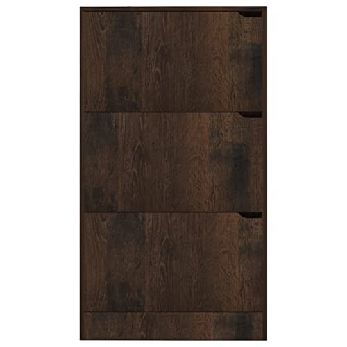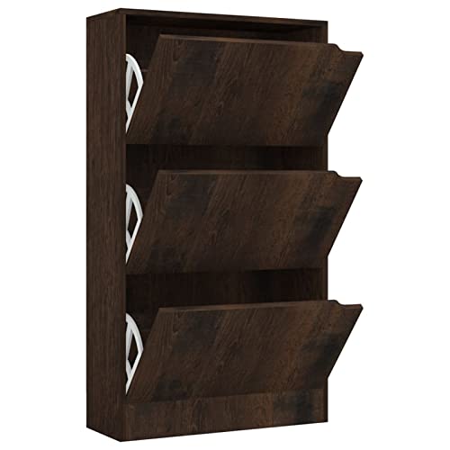 Bounv Scarpiera Salvaspazio, Scarpiera Slim, Scarpiera Ingresso, Scarpiera con 3 Ante, in Truciolato Rovere Sonoma fumé 59x24x105cm