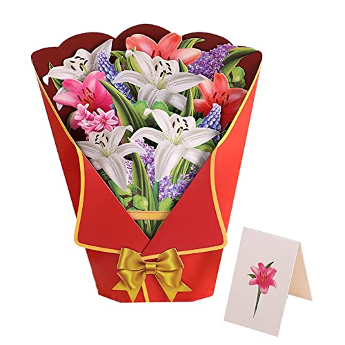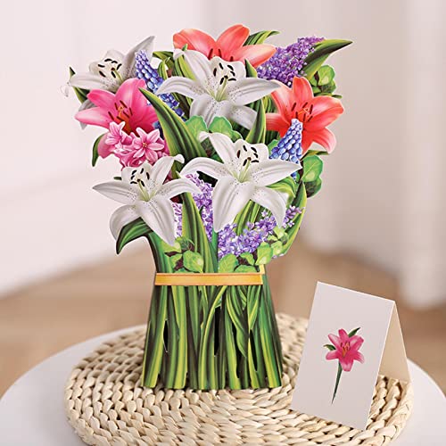 Bouquet di fiori di carta, 3D fiori pop-up bouquet biglietti di auguri per donne, moglie, mamma e amante della festa della mamma (gigli)