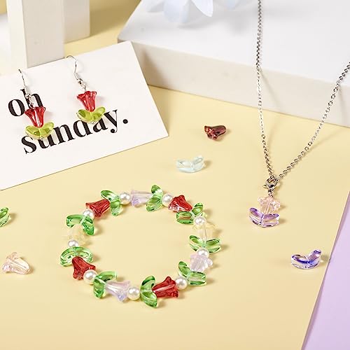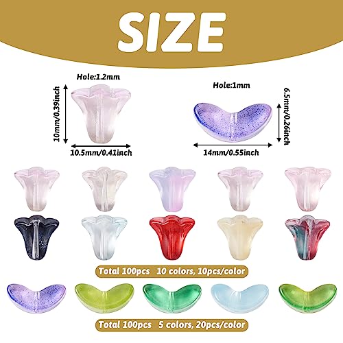 Boutigem 200 perline a forma di foglia di orchidea a forma di campana, in vetro lavorato a mano, per collane, bracciali, orecchini, gioielli fai da te