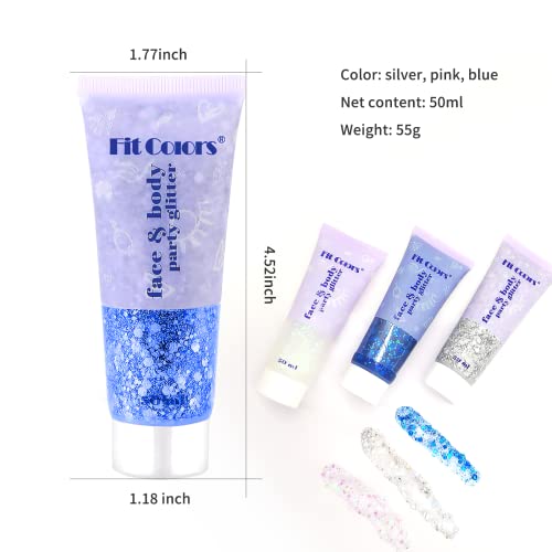 Bowasin Body Glitter Gel Trucco Carnevale Glitter Viso Glitter Gel Glitter per Viso Capelli Labbra Trucco Trucco Cosmetici Festival Festa Lunga Lunga Durata Scintillante 3 Bottle 3 Colori