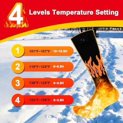 BOWJETE Calzini riscaldati a batteria, da uomo e da donna, ricaricabili, invernali, caldi, con 4 impostazioni di calore, calze termiche riscaldate per escursioni, campeggio, sci, pesca, caccia