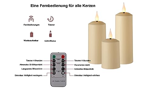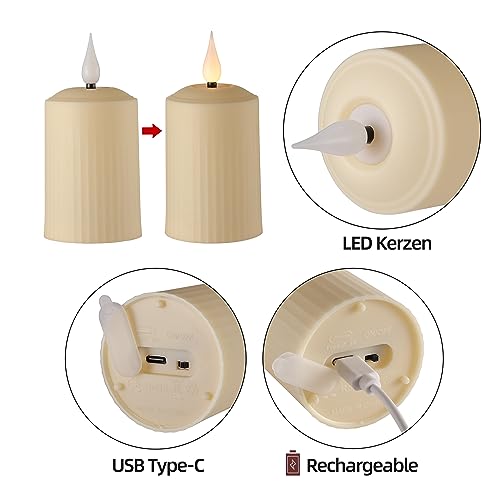 BOWKA Candele a LED per esterni, ricaricabili con telecomando e timer, luce bianca calda, dimmerabili, senza fili, cavo USB Home Deco (3 pezzi)