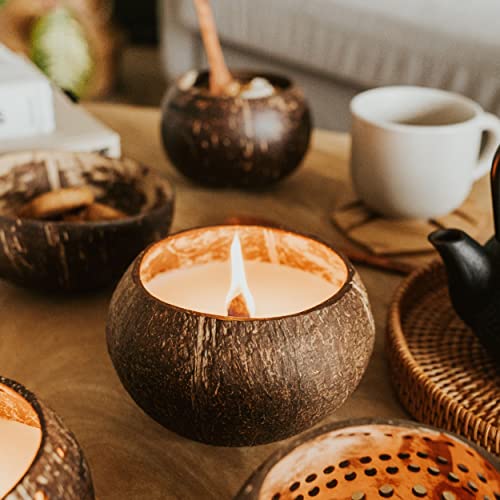 ORIGINALE - Realizzata usando vere noci di cocco, 300g di cera naturale di soia e cocco e un bellissimo stoppino in legno croccante. Candela dal profumo caldo, confortevole e avvolgente di Cannella