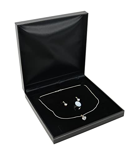 Boxdisplays - Collana grande in similpelle nera con scatola di perle