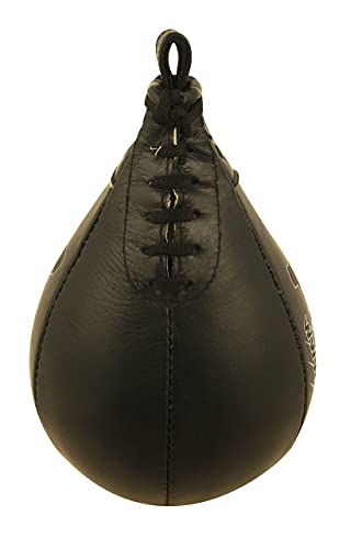 Boxe Punching ball in vera pelle, sacco da boxe per MMA, pallone da boxe, boxe, boxe, in pelle, con cuscinetti a sfera rotante, perforazione pera (nero)
