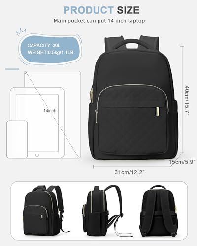 BOXSAM Zaino Porta PC, Zaino Scuola, Zaino da Viaggio, Zaino Bagaglio a Mano con Porta Ricarica USB, Zaino Impermeabile Antifurto Multifunzione per Collegio, Ufficio, Aeroporto,Lavoro,Nero