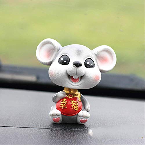 Boxuanzhijia Ornamenti in Resina per Auto Agitazione Testa di Topo Decorazioni per Auto Felicità Topo Grigio