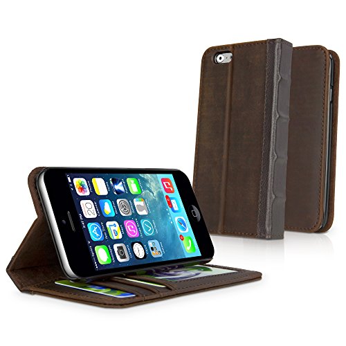 BoxWave Custodia a portafoglio per iPhone 6/6 Plus, con tasche interne per carte di credito/biglietti da visita, in vera pelle, Brown, iPhone 6