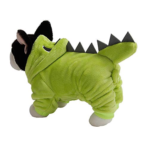 Boxwizard Costume per cani dinosauro costume per cani in pile di corallo invernale in pile verde per animali domestici 4 piedi vestiti caldi per gatti (S)