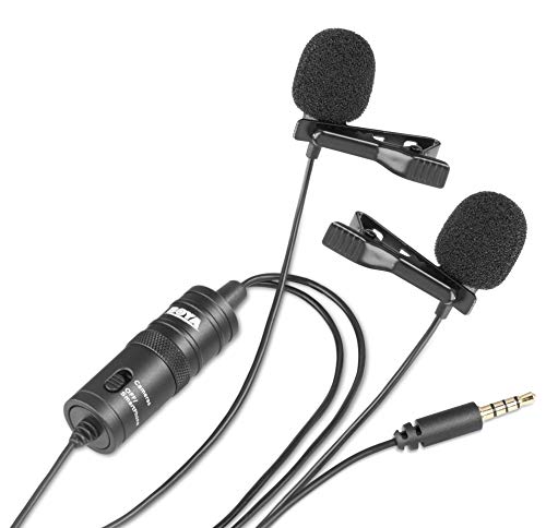 BOYA BY-M1DM Microfono Lavalier Dual Omnidirezionale bavero Clip-on Condensatore Microfono per Canon Nikon Sony DSLR Camera Camcorder per iPhone Samsung Huawei Smartphone Registratori audio