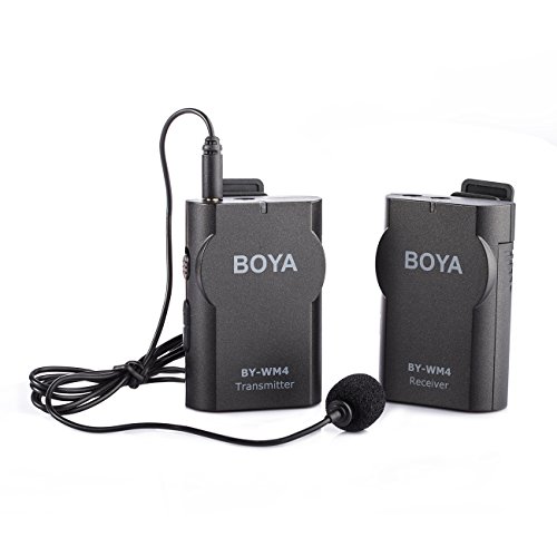 Boya BY-WM4 Wireless Microfono 2.4 GHz Universale per Iphone, Smartphone, DSLR, Camcorder, PC Microfono Lavalier con Ricevitore e Trasmettitore Con Box Schede Tarion