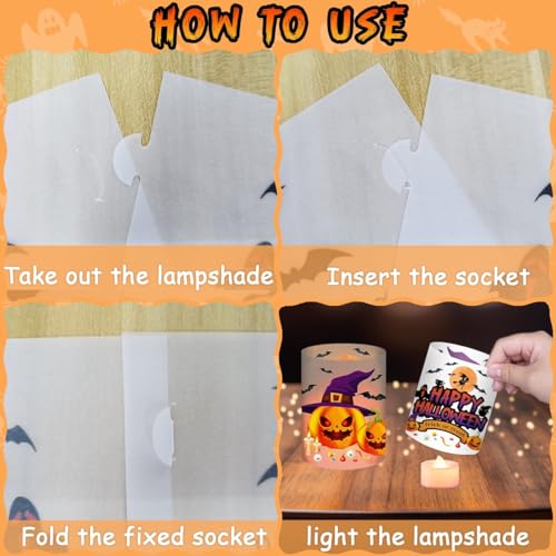 BOYATONG 12 lanterne da tavolo per Halloween, decorazione per interni ed esterni, per giardino, zucca, pipipistrello, caramelle, strega, decorazione per Halloween, feste per bambini o candele