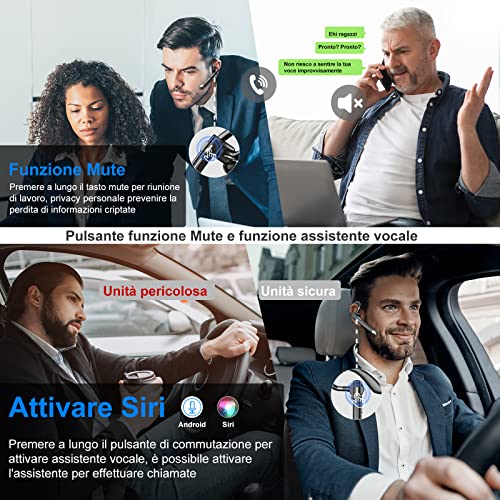 Chiamata a Mani Libere & Gancio Auricolare Regolabile: L'auricolare Bluetooth ha un esterno unico ed elegante. Perfetto da abbinare al tuo ambiente di lavoro, leggero progettato per fornire una vestibilità precisa e confortevole per le orecchie di tutte le dimensioni. La funzione di richiamo vocale dell'auricolare wireless supporta il comando vocale a mani libere per Siri e l'assistente di Google. Ideale per le conferenze online, più sicuro per rispondere alle chiamate durante la guida.